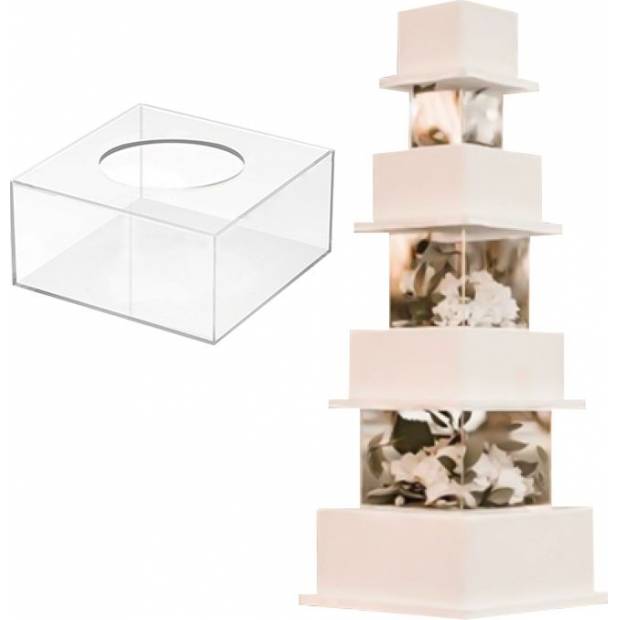 Akrylový plnitelný hranatý stojan na dort - mezipatro. Rozměry 25 x 15 cm.