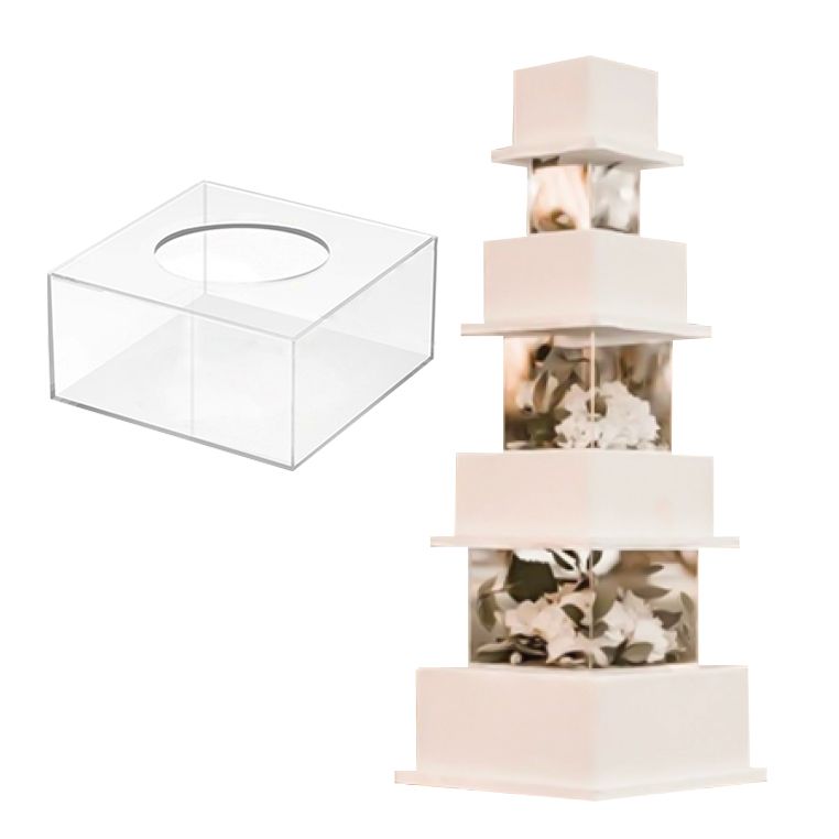 Akrylové mezipatro snadno naplníte nejrůznějšími výtvory. Horní otvor vám umožní rozhodnout se, jaký zvolíte styl pro váš dort s nekonečnou zábavou ve směsi kreativity a funkčnosti. Použijte toto luxusní patro jako zvedák, rozdělovač, stojan a/nebo jako „patr“ mezi dort. Ideální pro vystavení dortů na večírcích a pro jiné výstavy pro všechny příležitosti. Lehký, odolný akrylový materiál a opakovaně použitelný.