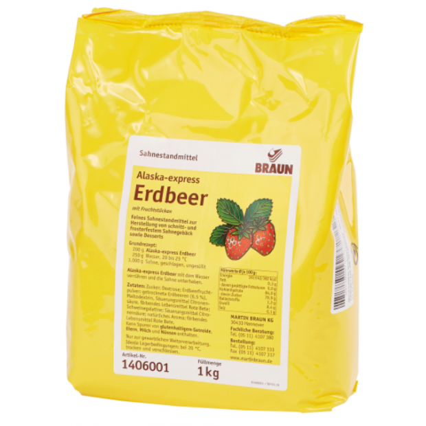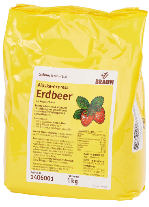Stabilizátor smetany se sušenými jahodami a přírodním aroma. Pro přípravu krájeného a mrazitelného krémového pečiva a dezertů. Část smetany nahraďte například jogurtem nebo tvarohem, případně místo vody použijte prosecco, šumivé víno nebo bílé víno.