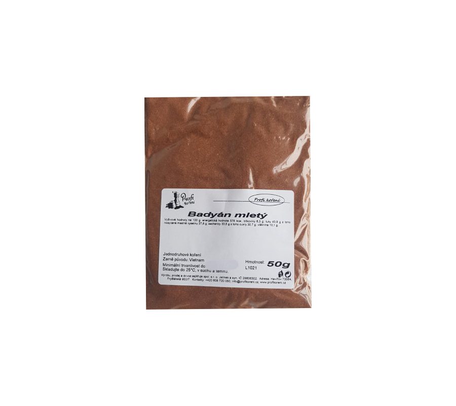 Badyán je namletý na světle hnědý prášek s výraznou vůní, která je kořeněná a podobá se anýzu. Využijete jej do pečiva, kompotů, povidel, ve svařeném víně i asijské kuchyni. Badyán je označován jako čínský anýz. Jako koření dorazil do Evropy v 17. století z Číny. Dnes se pěstuje v celé Asii.