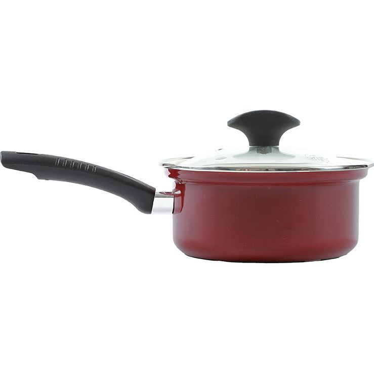Nádobí má stylové nerezové kování pro ergonomické uchopení při manipulaci a skleněná poklice má vylepšený otvor pro únik přebytečné páry.
