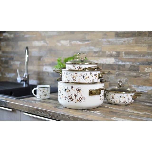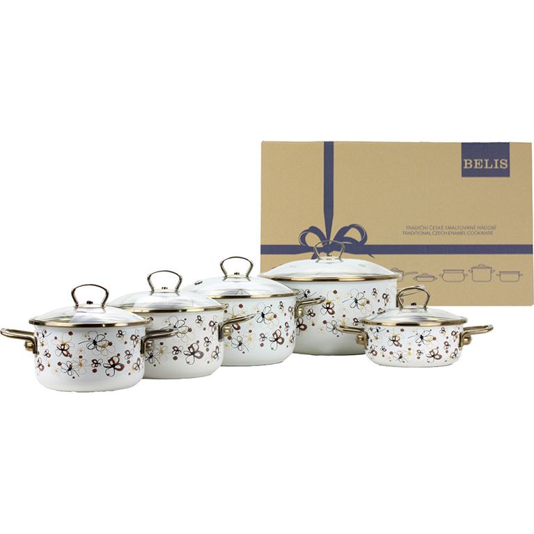 Belis BELIS Sada smaltovaného nádobí PREMIUM krémový 5-dílná