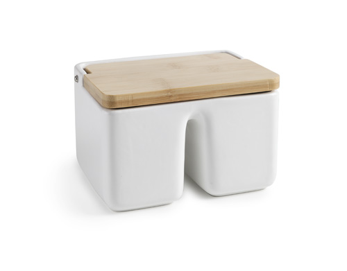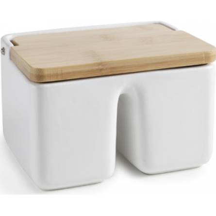 Keramická dóza na sůl či jiné pochutiny DUO je velmi elegantním a zároveň praktickým pomocníkem v kuchyni. Dóza obdélníkového tvaru je rozdělena na dvě části a je vyrobena z keramiky, která pomůže uchovat potraviny stále kvalitní, bez zbytečné vlhkosti. Praktické víko je z bambusu, velmi dobře těsní. Je ideální do každé moderní kuchyně. Rozměry dózy jsou 15 x 11 x 10 cm.