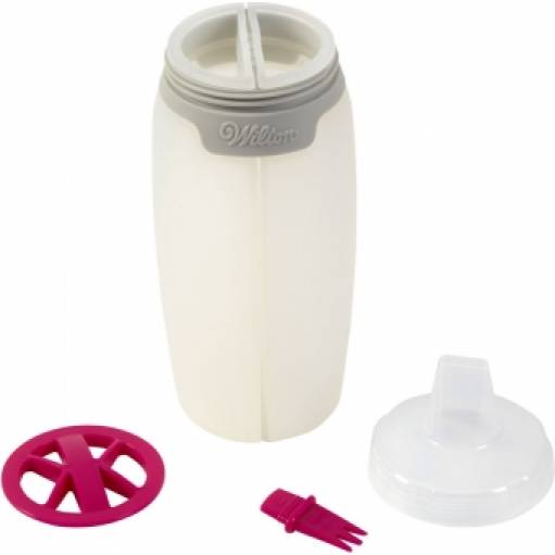 S touto zdobící lahví můžete zdobit perníčky nebo s ní rovnou nanést do formy na pečení dvoubarevné těsto. Láhev na zdobení je vyrobena z odolného silikonu a obsah tak můžete ohřát či roztavit v mikrovlnné troubě. Stejně tak můžete lahvičku o objemu 331 ml umýt v myčce nádobí. Je vyrobena ze zdravotně nezávadného a netoxického materiálu. Vytvářejte kouzelné vícebarevné efekty a překvapte všechny dokonalou hrou barev. Láhev je z průhledného materiálu, máte tak přehled o množství zdobícího krému či polevy.