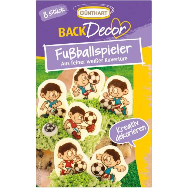 Dodejte svým pečicím výtvorům kouzelný a sladký nádech s fotbalisty Günthart BackDecor vyrobenými z té nejlepší bílé čokolády. Tato okouzlující sada obsahuje celkem 8 kusů v různých motivech.Tito fotbalisté byli vyrobeni z vysoce kvalitní bílé čokolády a jsou nejen dekorativním, ale i lahodným doplňkem vašich sladkých výtvorů. Jemná čokoládová chuť potěší nejen děti, ale i dospělé.