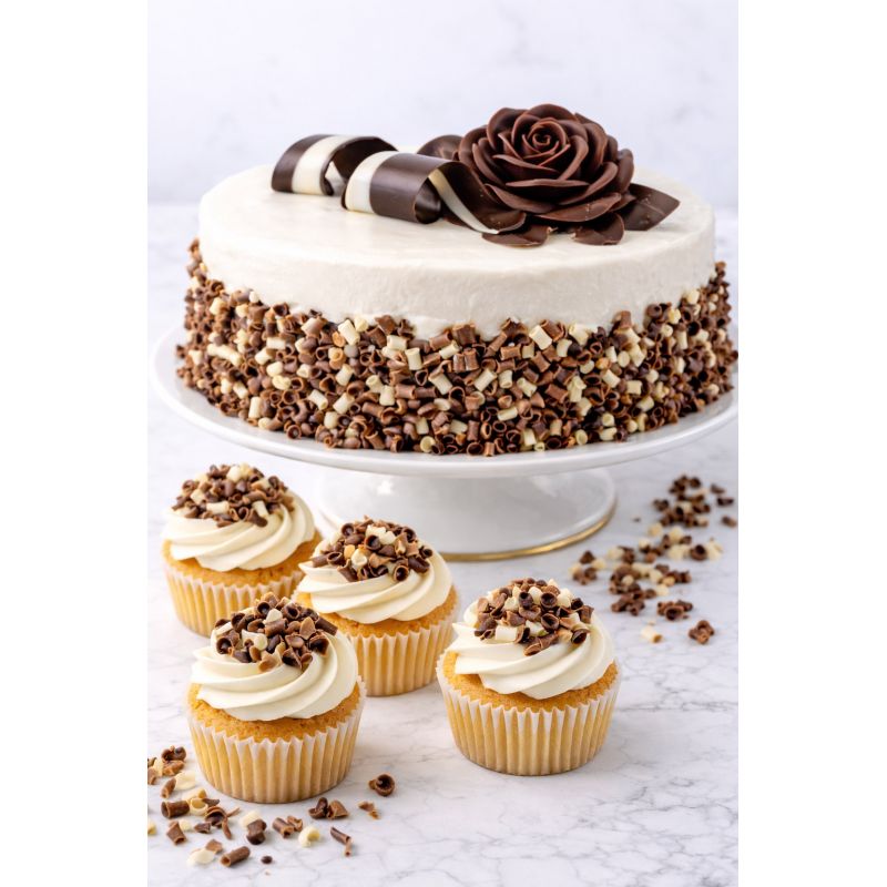 Lahodné čokoládové hobliny bílé, které jsou zároveň i dekorací na náš moučník .