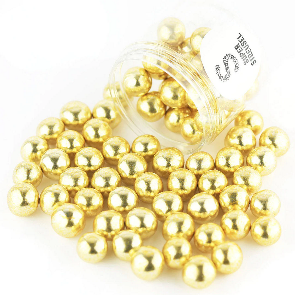 Čokoládové perly XL. Zlatá barva. Balení 130 g.