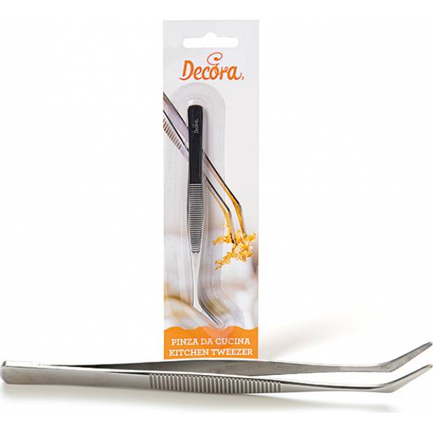 Cukrářská pinzeta je ideální pro vyzvednutí dražé nebo jemné cukrovinky z formy. Úhlový design vám umožní lepší pohled při práci a zajistí velkou přesnost. Navržena pro pohodlné držení. Vyrobena je z nerezové oceli. Přibližně 12 cm dlouhý pracovní nástroj pro amatérské i profesionální cukráře.