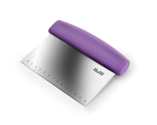 Pevná stěrka s rozměry 15 x 7,5 centimetru z velmi kvalitního nerezu a dobře řešenou rukojetí pro používání při mnoha cukrářských i kuchařských činnostech. Může se mát v myčce nádobí.