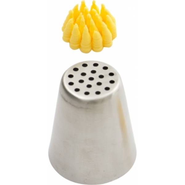 Kovová cukrářská zdobící špička víceotvorová č.8 na jemnou trávu vám zaručí přesnou a jedinečnou výzdobu v podobě trávy či rovnou celého trávníku. Špičku můžete použít se zdobícím sáčkem opakovaně. Je vyrobená z nerezové oceli, na povrchu nezůstávají skvrny od tuku. Není vhodná pro mytí v myčce.