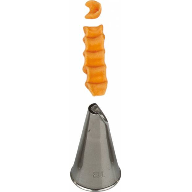 Kovová cukrářská zdobící špička 80 vám zaručí přesnou a jedinečnou výzdobu. Špičku můžete použít se zdobícím sáčkem opakovaně. Je vyrobená z nerezové oceli, na povrchu nezůstávají skvrny od tuku. Není vhodná pro mytí v myčce.