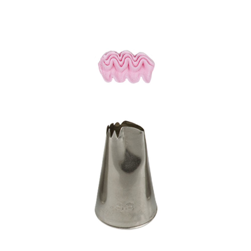 Kovová cukrářská zdobící špička 88 pro přesnou a jedinečnou výzdobu z krému. Špičku můžete použít se zdobícím sáčkem opakovaně. Je vyrobená z nerezové oceli, na povrchu nezůstávají skvrny od tuku. Není vhodná pro mytí v myčce.