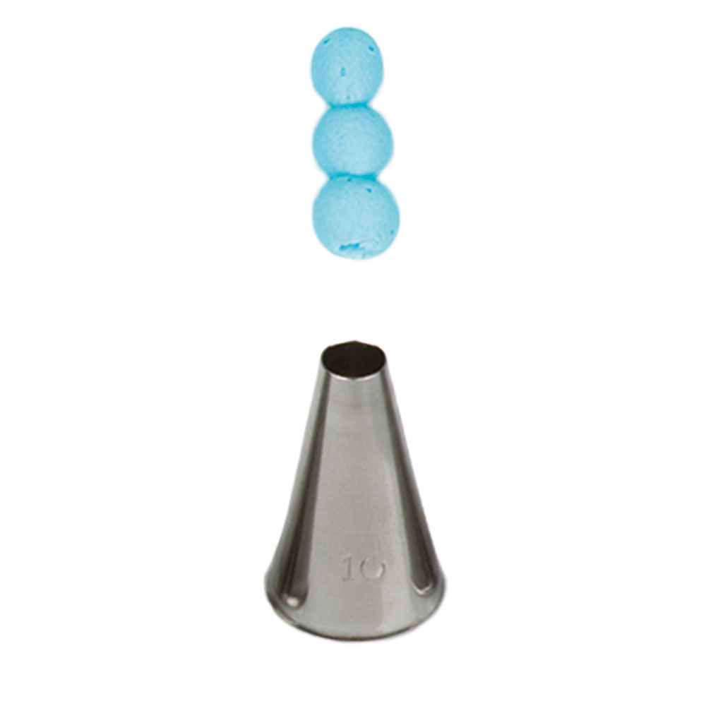 Kovová cukrářská zdobící špička kulatá 10 vám zaručí přesnou a jedinečnou výzdobu. Špičku můžete použít se zdobícím sáčkem opakovaně. Je vyrobená z nerezové oceli, na povrchu nezůstávají skvrny od tuku. Není vhodná pro mytí v myčce.