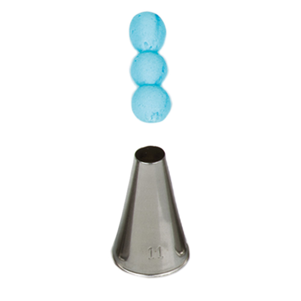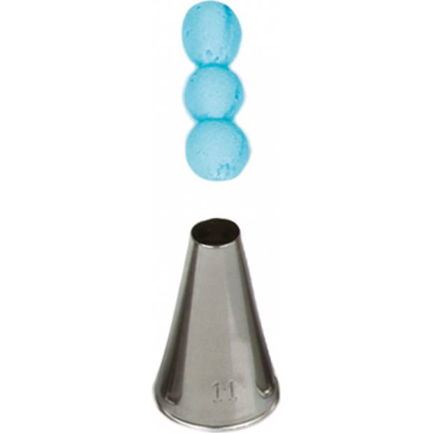 Kovová cukrářská zdobící špička kulatá 11 pro přesnou a jedinečnou výzdobu. Špičku můžete použít se zdobícím sáčkem opakovaně. Je vyrobená z nerezové oceli, na povrchu nezůstávají skvrny od tuku. Není vhodná pro mytí v myčce.