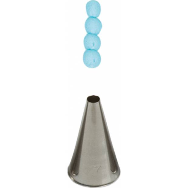 Kovová cukrářská zdobící špička kulatá 7 vám zaručí přesnou a jedinečnou výzdobu. Špičku můžete použít se zdobícím sáčkem opakovaně. Je vyrobená z nerezové oceli, na povrchu nezůstávají skvrny od tuku. Není vhodná pro mytí v myčce.