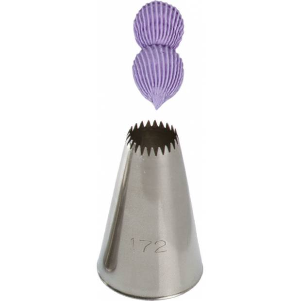 Kovová cukrářská zdobící špička řezaná 172 vám zaručí přesnou a jedinečnou výzdobu. Špičku můžete použít se zdobícím sáčkem opakovaně. Je vyrobená z nerezové oceli, na povrchu nezůstávají skvrny od tuku. Není vhodná pro mytí v myčce.