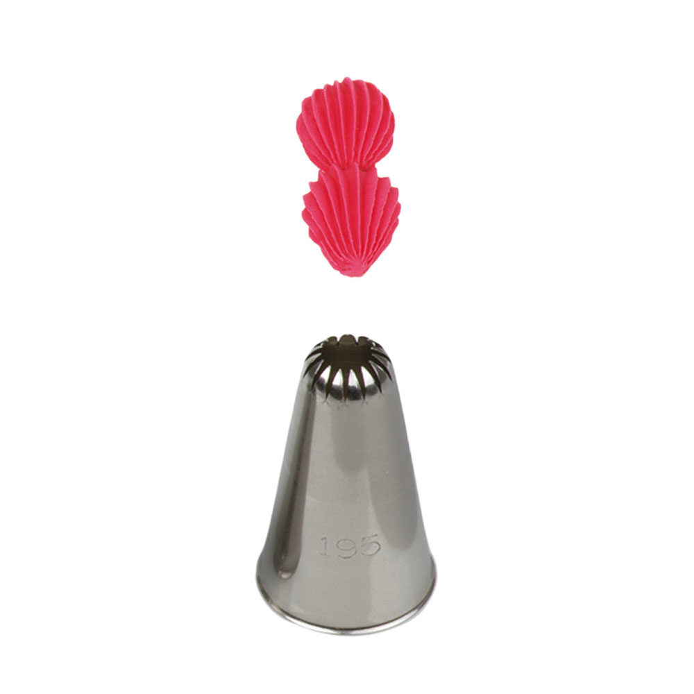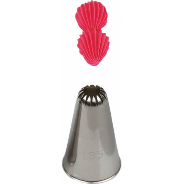 Kovová cukrářská zdobící špička řezaná 195, se kterou zaručeně vytvoříte velmi přesnou a jedinečnou výzdobu. Špičku můžete použít se zdobícím sáčkem opakovaně. Je vyrobená z nerezové oceli, na povrchu nezůstávají skvrny od tuku. Není vhodná pro mytí v myčce.