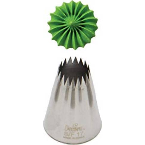 Kovová cukrářská zdobící špička řezaná S/F17 vám zaručí přesnou a jedinečnou výzdobu. Špičku můžete použít se zdobícím sáčkem opakovaně. Je vyrobená z nerezové oceli, na povrchu nezůstávají skvrny od tuku. Není vhodná pro mytí v myčce.