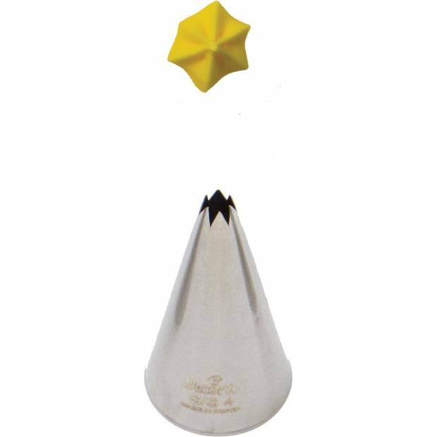 Kovová cukrářská zdobící špička řezaná S/S4 vám zaručí přesnou a jedinečnou výzdobu. Špičku můžete použít se zdobícím sáčkem opakovaně. Je vyrobená z nerezové oceli, na povrchu nezůstávají skvrny od tuku. Není vhodná pro mytí v myčce.