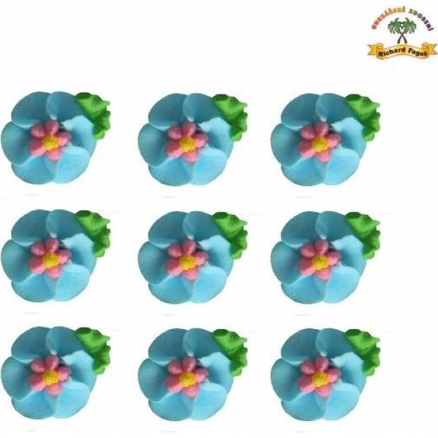 Cukrová dekorace květy modré na platíčku 9ks - Fagos