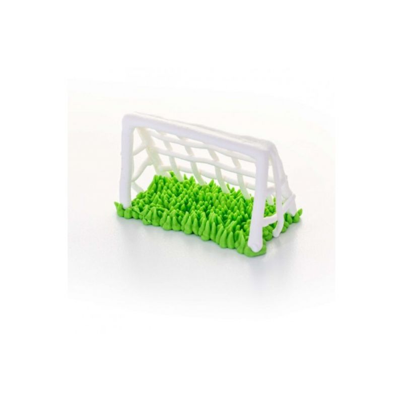 Jedlá dekorace na dort ve tvaru fotbalové branky. Potěší nejednoho fanouška fotbalu.