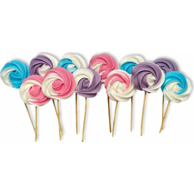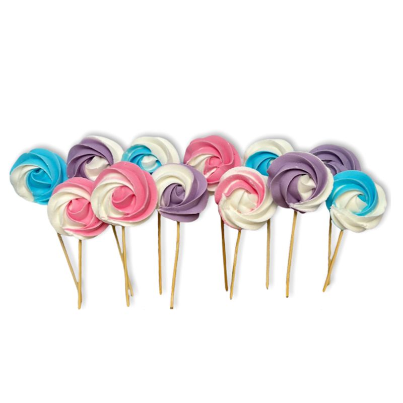 Elegantní cukrářská dekorace v podobě ručně vyráběných lízátek na špejli je skvělým způsobem, jak zpestřit sladký stůl nebo dodat jedinečný charakter dortům a dezertům. Barevné lízátka potěší nejen svým vzhledem, ale i pečlivým zpracováním, jsou odolná, stabilní a nedrolí se. Balení obsahuje 12 kusů, které se perfektně hodí jako působivá dekorace na večírky, oslavy narození dítěte a narozeniny.