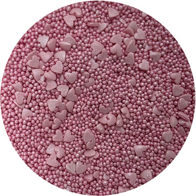 Cukrové zdobení metalické růžové srdce mix. Balení 80 g.