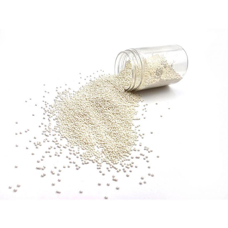 Tyto bílé perličky jsou univerzální cukrová dekorace. Tyto barevné cukrové kuličky dodávají eleganci tradičním i inovativním cukrářským výtvorům. Vysoce kvalitní barviva zaručují barevnou stálost. Perličky na zdobení dortů jsou krásným doplňkem hladkého povrchu dortů. Dají se s nimi zdobit i perníčky, drobné cukroví, muffiny nebo dorty. Jedná se o univerzální dekorace, které vám pomohou doladit vaše chutné pečivo. Další obrovskou výhodou perel je jejich snadná aplikace. Stačí je položit na vámi vybraný povrch a je hotovo. Perly se perfektně hodí k cukrové pastě a dalším. Lze je kombinovat s různými krémy. V naší nabídce najdete jemné cukrové perly, které lze bez obav konzumovat i s dezertem. Pokud zdobení nasypete na vláčný krém, vlhkost z něj může posypek změkčit. Ale pozor, pokud bude zdobení na vlhkém krému delší dobu, může se z posypku uvolnit i barvivo a to na povrch krému. Pokud chcete, aby větší části dekorace drželi například na potahovém dortu, můžete tento druh zdobení k dortům lepit polotuhou čokoládou, nebo glazurou na perníčky. s posypky pracujte nejlépe nad miskou, či plechem s okrajem.