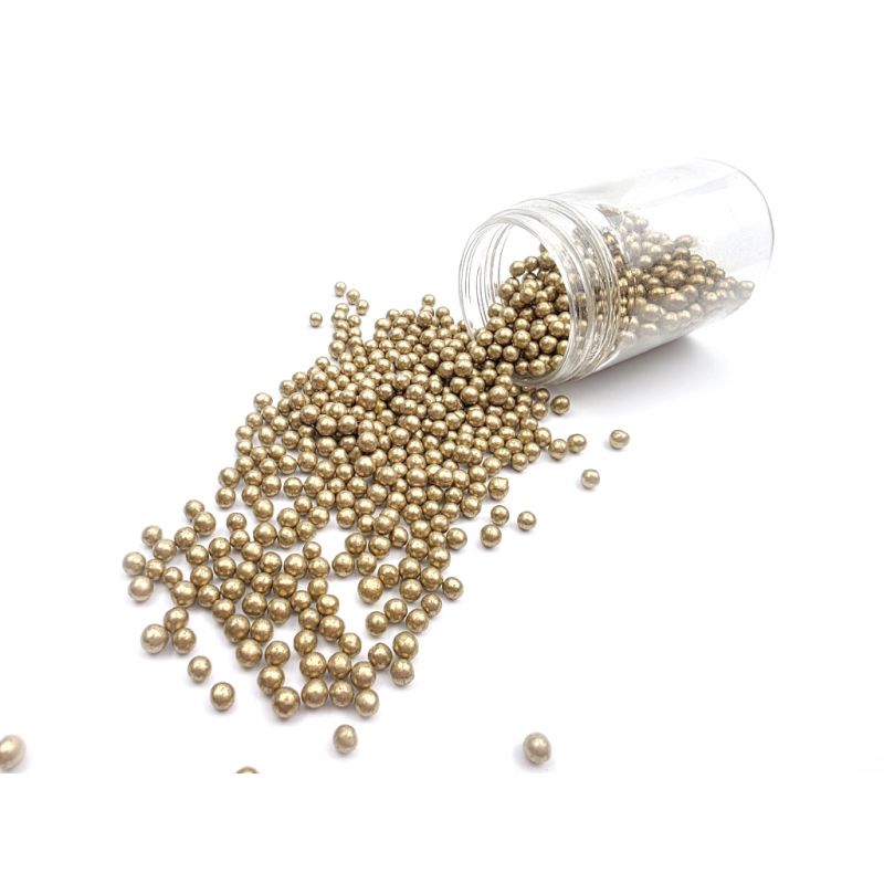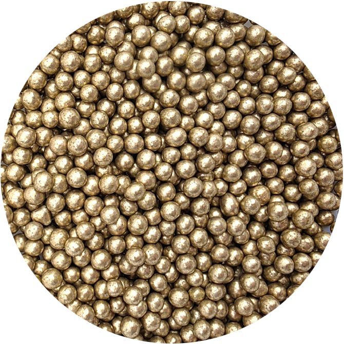 Cukrové perličky zlaté metalické, velké 5 mm. Balení 80 g.