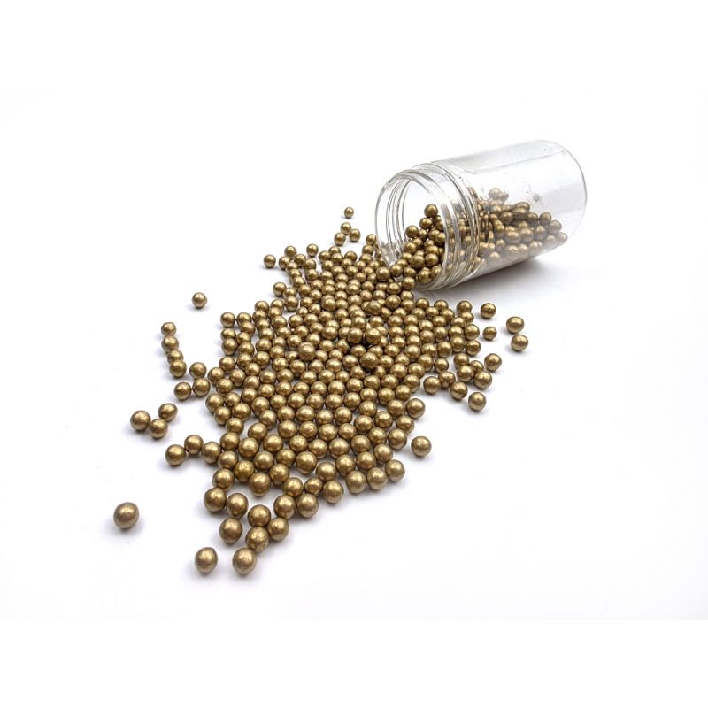 Cukrové perličky zlaté metalické, velké 7 mm. Balení 80 g.
