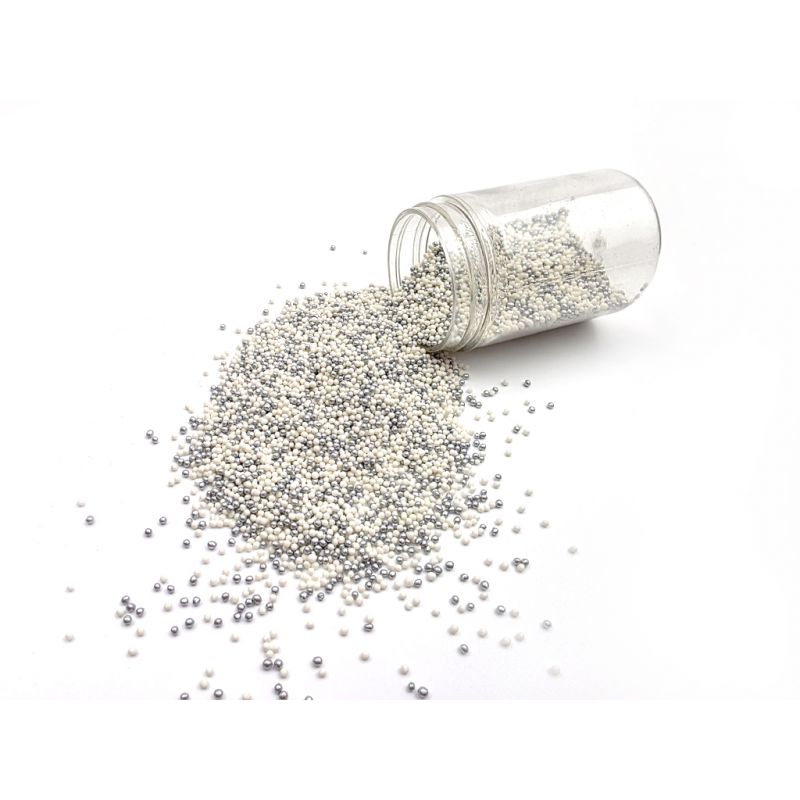 Cukrové perličky stříbrno-bílé. Balení 80 g.