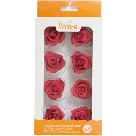 Hotové cukrové růže v červené barvě. Ručně vyráběné s přírodními extrakčními barvivy. Ideální pro zdobení dortů, košíčků, cukrovinek a sladkostí snadno a rychle, bez další složité úpravy. Balení obsahuje 8 kusů.