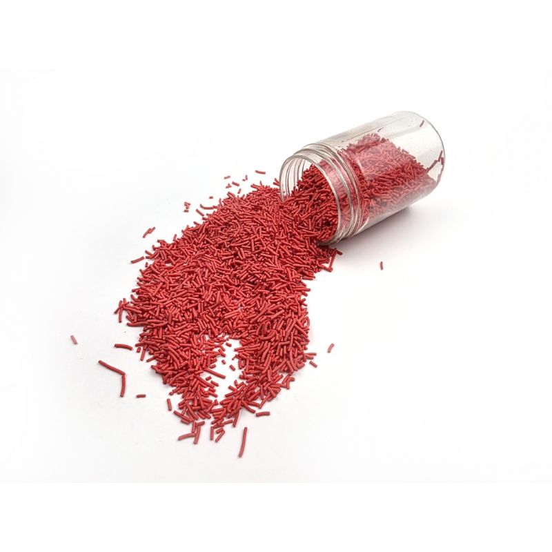 Červené cukrové tyčinky dělají dorty, sušenky, cupcaky, perníčky, dortíky a zmrzlinu ze sušenek velmi elegantní. Dodávají dezertům dokonalý vzhled. Hodí se na každou příležitost. Od této chvíle je zdobení cupcaků a dortů ještě jednodušší! Používají je také profesionální cukráři k dozdobení dortů a jiného pečiva. Máme je v různých barvách, velikostech a tvarech. Díky tomu je lze snadno sladit s dalšími detaily na pečivu nebo dezertech. Pokud zdobení nasypete na vláčný krém, vlhkost z něj může posypek změkčit. Ale pozor, pokud bude zdobení na vlhkém krému delší dobu, může se z posypku uvolnit i barvivo a to na povrch krému. Pokud chcete, aby větší části dekorace drželi například na potahovém dortu, můžete tento druh zdobení k dortům lepit polotuhou čokoládou, nebo glazurou na perníčky. s posypky pracujte nejlépe nad miskou, či plechem s okrajem.