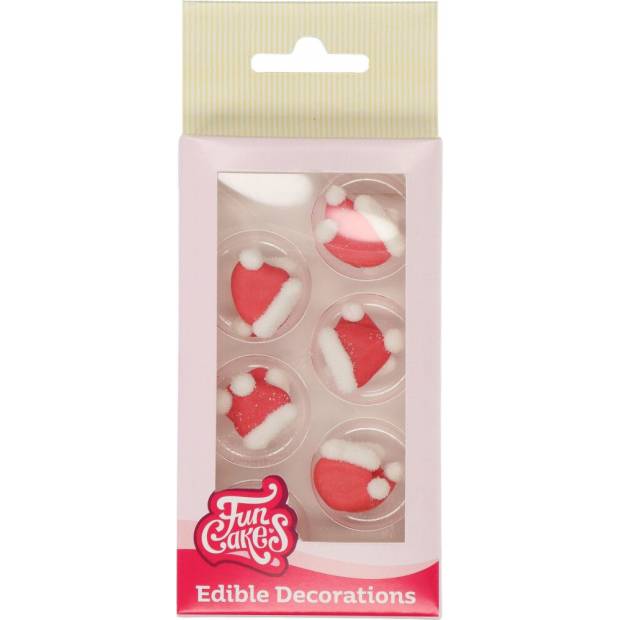 Ozdobte své cupcaky, sušenky nebo dezerty těmito roztomilými mikulášskými čepicemi od FunCakes. Cukrové ozdoby jsou ideální pro dokončení vašich vánočních cukrovíček nebo jiných dezertů.