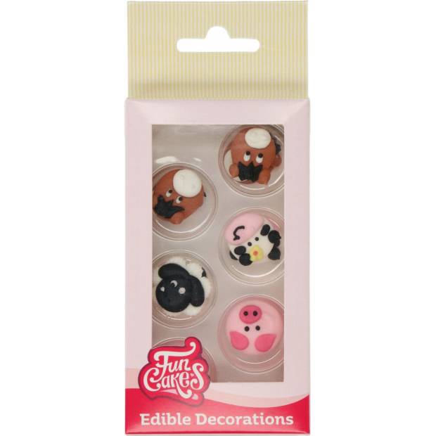 S těmito zábavnými dekoracemi z farmářských zvířat od FunCakes to bude jedna velká párty. Kromě krávy, ovce a prasete obsahuje tato sada také koně. Cukrové ozdoby jsou skvělé na zdobení dortů, cupcaků a dalších. Skladujte na chladném a suchém místě (12-20°C), bez slunečního záření a cizích pachů. Velikost: cca. 2,2 cm v průměru