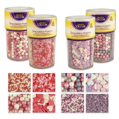 Tento barevný mix cukrového sypání se perfektně hodí pro přípravu cupcakes nebo muffinů na oslavu svátku všech zamilovaných, k výročí partnerovi či pro jinou příležitost. Sypání má tvar srdíčka, perliček nebo jiných tvarů. V balení je vždy mix barev.