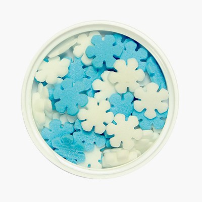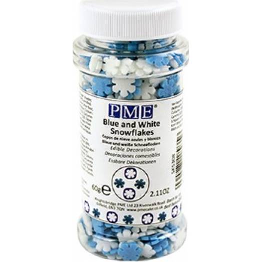 Tyto modro-bílé vločky jsou skvělou dekorací na dorty, sušenky a koláče, ale i poháry nebo třeba palačinky. Vytvořte si pomocí těchto vloček sladké dezerty. Zdobení je určeno pro finální zdobení. Balení se šroubovacím víčkem obsahuje 60 g zdobení.