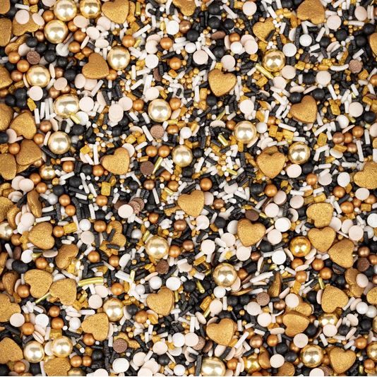 Velký svůdce mezi našimi milostnými mixy. Musíte si na něj dávat pozor. Je těžké mu odolat. Záblesk sem, mrknutí tam, šibalský úsměv a zlaté srdce. Casanova vás během chvíle okouzlí a není úniku. Casanova se cítí obzvláště dobře s čokoládou – lichotí jeho pleti. Zlaté čokoládové kuličky a srdce, konfetové posypy v jemné krémové a hnědé barvě. Plus bronzové a černé korálkové posypy spolu se sladkými krystalovými posypy. Casanova se svými svůdnými tlumenými tóny je také obzvláště oblíbená ke Dni otců nebo mužským narozeninám. Složení Kuličky: Naše střední a velké kuličky jsou všechny lahodně plněné jemnou čokoládou nebo křupavé křupavé. Míchání: Během přepravy se velké posypky a čokoládové kuličky obvykle trhají doprostřed plechovky. Abyste mohli obdivovat plnou nádheru posypek, stačí plechovku vyklopit do misky a nechat se okouzlit :)