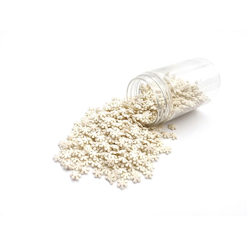 Cukrové sypání ve tvaru sněhových vloček v bílé barvě.