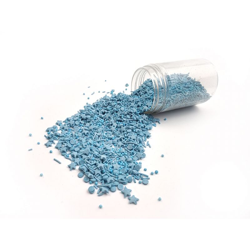 Dejte svým cukrářským výtvorům osobitý charakter s mixem modrých perliček různých tvarů. Tyto ozdobné částice představují rychlý způsob, jak elegantně ozdobit dorty, cupcakes, sušenky, perníčky, cake pops nebo zmrzlinu. Modrá je příjemná barva, která se hodí ke každé příležitosti – od Vánoc, přes Valentýna až po Halloween nebo Velikonoce. Zdobení se skvěle hodí k cukrové pastě, polevě, krémům a čokoládě. Dodá pečivu hloubku, kontrast a přitahuje pozornost – stačí jej posypat po povrchu dortu a okamžitě dosáhnete „wow“ efektu. Snadno se nanáší a je ideální jak pro domácí cukráře, tak pro profesionály. Pokud zdobení nasypete na vláčný krém, vlhkost z něj může posypek změkčit. Ale pozor, pokud bude zdobení na vlhkém krému delší dobu, může se z posypku uvolnit i barvivo a to na povrch krému. Pokud chcete, aby větší části dekorace drželi například na potahovém dortu, můžete tento druh zdobení k dortům lepit polotuhou čokoládou, nebo glazurou na perníčky. s posypky pracujte nejlépe nad miskou, či plechem s okrajem.