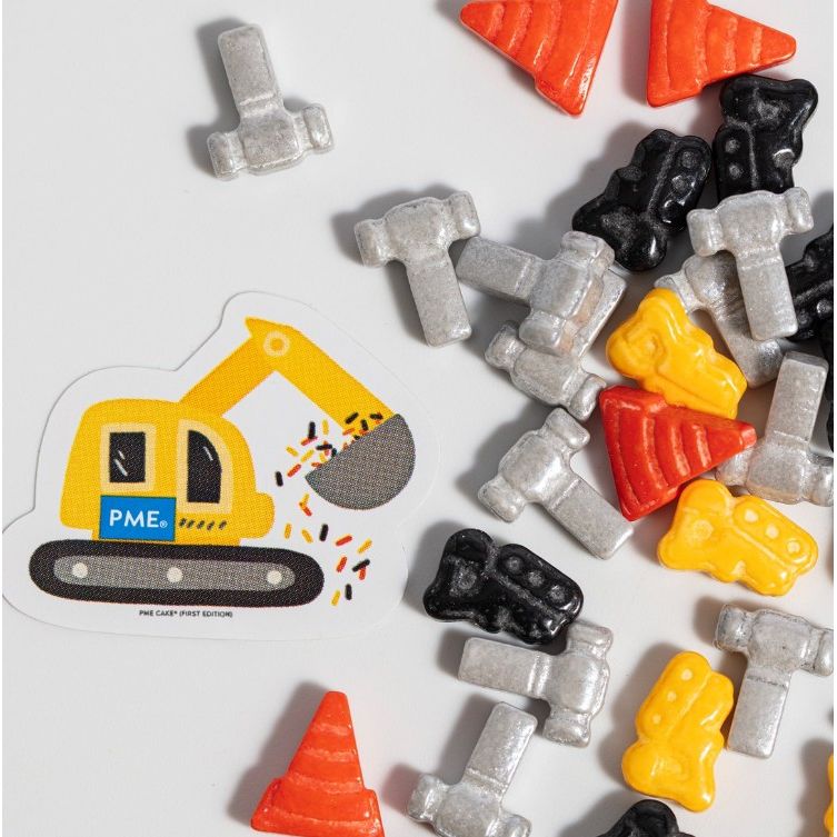 Formy inspirované světem staveništ a staveb. Každý prvek z tohoto cukrového sypání je perfektní pro narozeninové oslavy, tematické akce a párty hry věnované milovníkům malých objemných nákladů, nákladních automobilů a pracovních vozidel.