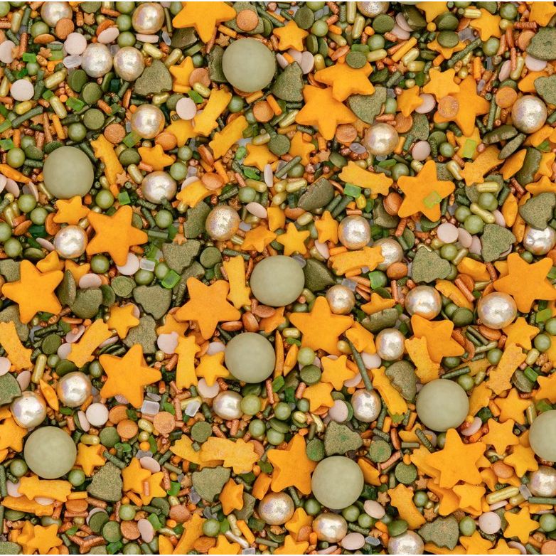 Připrav se na opravdovou hvězdnou show – přichází cukrové zdobení Vánoční hvězdy 90 g! Tenhle třpytivý mix vypadá, jako by spadl přímo z vánoční oblohy. Uvnitř najdeš záplavu zlatých hvězdiček, lesklých komet, zelených stromečků, drobných zlatých kuliček i olivově zelených čokoládových perliček se šťavnatým jádrem. Spolu vytvářejí harmonii barev a chutí, která na každém dortu nebo cukroví vykouzlí sváteční atmosféru plnou radosti.