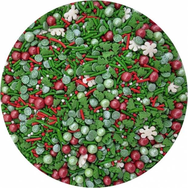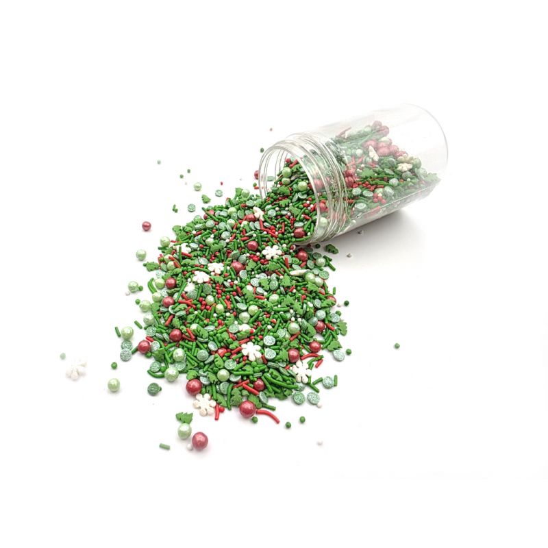 Sypání má podobu mixu sestaveného z různě velkých perliček a vánočních motivů. Jedná se o sladký posyp z řady unikátních produktů od ILOVECAKES. Nemění chuť zdobených výrobků, je vyroben z přírodních barviv a má chuť cukrové pasty. Jedná se o velmi univerzální zdobení, ideální na dekorování cupcaků, sušenek, perníčků, muffinů, dortů, zákusků, pečiva, dortů, pralinek, lanýžů, čokolády, zmrzliny a mnoha dalších sladkých výrobků, zejména těch s krémy a polevou. Je vhodný pro každou příležitost: zejména pro vánoční dorty a cukroví. Baleno v praktické šroubovací dóze. Pokud zdobení nasypete na vláčný krém, vlhkost z něj může posypek změkčit. Ale pozor, pokud bude zdobení na vlhkém krému delší dobu, může se z posypku uvolnit i barvivo a to na povrch krému. Pokud chcete, aby větší části dekorace drželi například na potahovém dortu, můžete tento druh zdobení k dortům lepit polotuhou čokoládou, nebo glazurou na perníčky. s posypky pracujte nejlépe nad miskou, či plechem s okrajem.