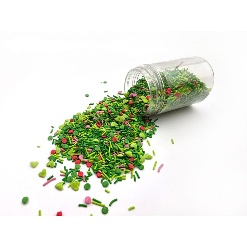 Směs zelených, červených a růžových posypek různých tvarů je skvělou ozdobou vašeho lahodného dortu. Každý pečený výrobek vypadá skvěle s těmito jedlými perlami. Stačí posypat hotový výrobek nebo naaranžovat požadované ozdoby a máte hotovo. Ideální pro zdobení dortů, cupcakes, pečiva. Využijte tento elegantní mix připravený k dekoraci. Posypky budou krásně vypadat na dortících nebo jiném pečivu.Ideální pro různé příležitosti, např. oslava narození dítěte, narozeniny, jmeniny, svatby, přijímání, křtiny, rozlučky se svobodou, svátky." Cukrové posypky jsou nenahraditelným produktem pro zpestření pečiva a dalších dezertů. Jsou snadno použitelné a jejich účinek může být ohromující. Zvlášť pokud jsou posypky ve formě tohoto fialového mixu. Jedinečné prvky udělají z každého dezertu středem pozornosti. Jsou považovány za hlavní dekorativní prvky mnoha pečiva a dalších dezertů. Jsou okouzlující a decentní na pohled a zároveň dělají obrovský dojem. Mají tvrdou strukturu a nerozpouštějí se ve zmrzlině ani ve šlehačce. Pokud zdobení nasypete na vláčný krém, vlhkost z něj může posypek změkčit. Ale pozor, pokud bude zdobení na vlhkém krému delší dobu, může se z posypku uvolnit i barvivo a to na povrch krému. Pokud chcete, aby větší části dekorace drželi například na potahovém dortu, můžete tento druh zdobení k dortům lepit polotuhou čokoládou, nebo glazurou na perníčky. s posypky pracujte nejlépe nad miskou, či plechem s okrajem. Svatební rej to je mix bílých tyčinek a zlatých perliček, které můžete použít na zdobení svatebních dortů, dezertů, cupcakes, pops cake lízátek a dalších dezertů na svatební hostinu. Jedinečné prvky udělají z každého dezertu středem pozornosti. Jsou považovány za hlavní dekorativní prvky mnoha pečiva a dalších dezertů. Jsou okouzlující a decentní na pohled a zároveň dělají obrovský dojem. Mají tvrdou strukturu a nerozpouštějí se ve zmrzlině ani ve šlehačce. Posypky jsou baleny v praktické nádobě pro snadné dávkování a skladování. Skladujte na chladném a suchém místě mimo dosah slunečního záření. Pokud zdobení nasypete na vláčný krém, vlhkost z něj může posypek změkčit. Ale pozor, pokud bude zdobení na vlhkém krému delší dobu, může se z posypku uvolnit i barvivo a to na povrch krému. Pokud chcete, aby větší části dekorace drželi například na potahovém dortu, můžete tento druh zdobení k dortům lepit polotuhou čokoládou, nebo glazurou na perníčky. s posypky pracujte nejlépe nad miskou, či plechem s okrajem.