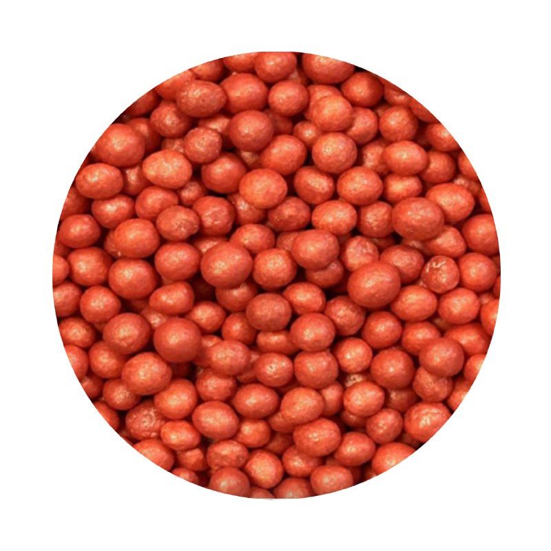 Červené perly vyrobené z rýžových lupínků a cukru. Jsou perfektní na zdobení dortů, zmrzliny, zákusků a perníčků. Objevte kouzlo těchto perel, které promění každý dezert v umělecké dílo. Jsou více než jen dekorace - jsou to drobné akcenty, které dodávají lesk a jedinečnost vašim sladkým výtvorům. Jsou vyrobené z nejkvalitnějších surovin. Jejich povrchová úprava je inovativním přístupem k dekoraci, která vyčnívá z tradičních jedlých ozdob. Pokud zdobení nasypete na vláčný krém, vlhkost z něj může posypek změkčit. Ale pozor, pokud bude zdobení na vlhkém krému delší dobu, může se z posypku uvolnit i barvivo a to na povrch krému. Pokud chcete, aby větší části dekorace drželi například na potahovém dortu, můžete tento druh zdobení k dortům lepit polotuhou čokoládou, nebo glazurou na perníčky. s posypky pracujte nejlépe nad miskou, či plechem s okrajem.