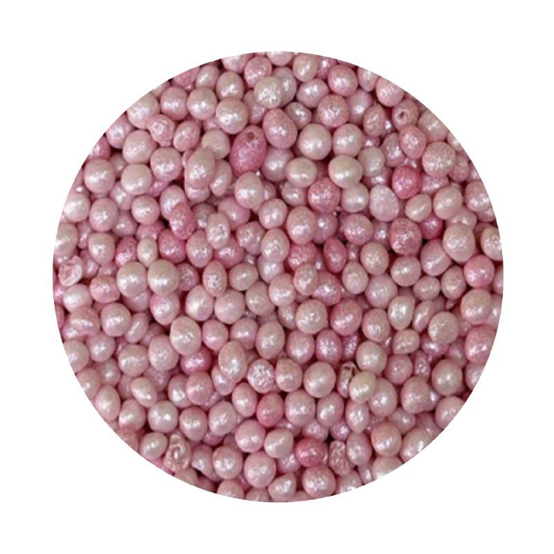 Růžové perly vyrobené z rýžových lupínků a cukru. Jsou perfektní na zdobení dortů, zmrzliny, zákusků a perníčků. Objevte kouzlo těchto perel, které promění každý dezert v umělecké dílo. Jsou více než jen dekorace - jsou to drobné akcenty, které dodávají lesk a jedinečnost vašim sladkým výtvorům. Jsou vyrobené z nejkvalitnějších surovin. Jejich povrchová úprava je inovativním přístupem k dekoraci, která vyčnívá z tradičních jedlých ozdob. Pokud zdobení nasypete na vláčný krém, vlhkost z něj může posypek změkčit. Ale pozor, pokud bude zdobení na vlhkém krému delší dobu, může se z posypku uvolnit i barvivo a to na povrch krému. Pokud chcete, aby větší části dekorace drželi například na potahovém dortu, můžete tento druh zdobení k dortům lepit polotuhou čokoládou, nebo glazurou na perníčky. s posypky pracujte nejlépe nad miskou, či plechem s okrajem.
