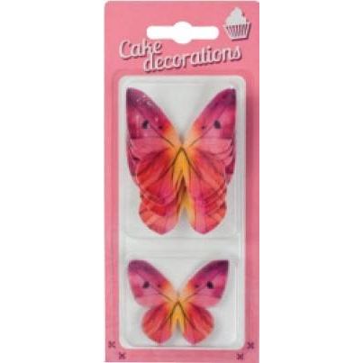 Dekorace z jedlého papíru Motýlci růžovo-červení (8 ks)