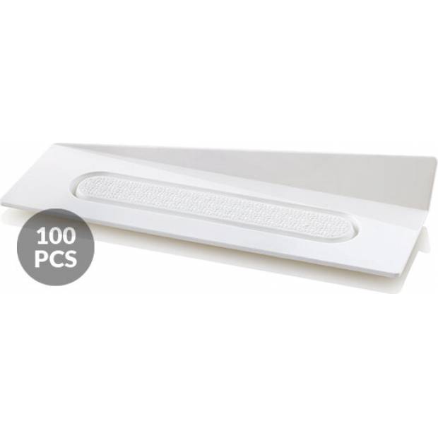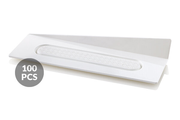 Namísto použití jednoduchých talířů vám doporučujeme tyto dekorační podložky, které předvedou vaše dezerty s třídou a elegancí. V balení je 100 bílých obdélníkových plastových podstavců od Silikomartu. Jsou opakovaně použitelné, protiskluzové, stohovatelné a díky boční chlopni se snadno uchopují. Rozměry základny: 14 x 4 cm.