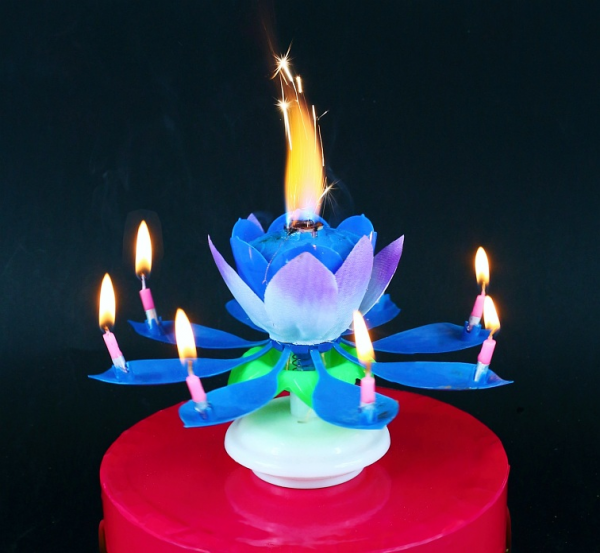 Dortová fontána s hrací skříňkou hrající melodii Happy Birthday.....Výhled je úžasný, po odpálení okvětních lístků se začnou jemně rozevírat, vše se začne točit a je slyšet melodii.