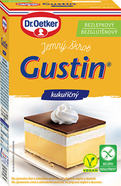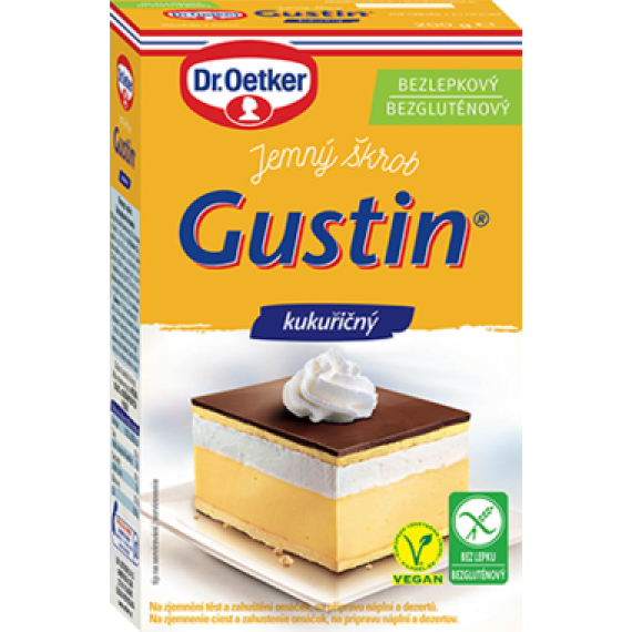 Jemný kukuřičný škrob bez lepku Gustin je tradičním výrobkem firmy Dr. Oetker a to již od roku 1898. Tento produkt je již přes sto let oblíbeným výrobkem hospodyněk pro své mnohostranné použití, např. ke zjemnění koláčů a dortů, k zahuštění polévek a omáček, k přípravě dortových náplní. Zjemnění těsta: Pro zjemnění piškotového těsta můžeme nahradit až 1/3 hmotnosti mouky škrobem Gustin. Zahuštění omáčky: Pro zahuštění omáčky přidáme na 700 ml tekutiny asi 50 g škrobu Gustin rozmíchaného v 50 ml vody a necháme asi 3 minuty povařit.